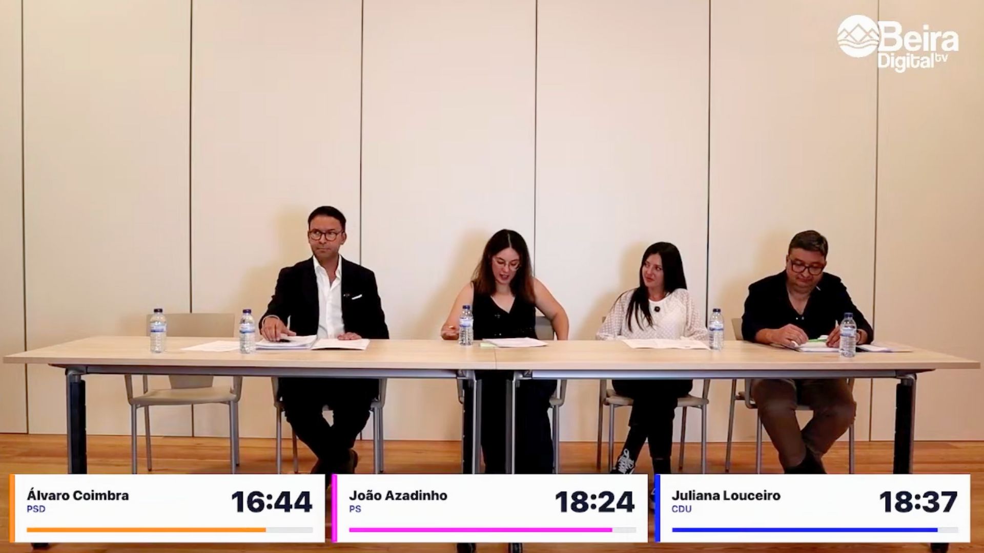 O sorteio determinou que começava Álvaro Coimbra (PSD), seguia-se Juliana Louceiro (CDU) e concluía João Azadinho (PS).