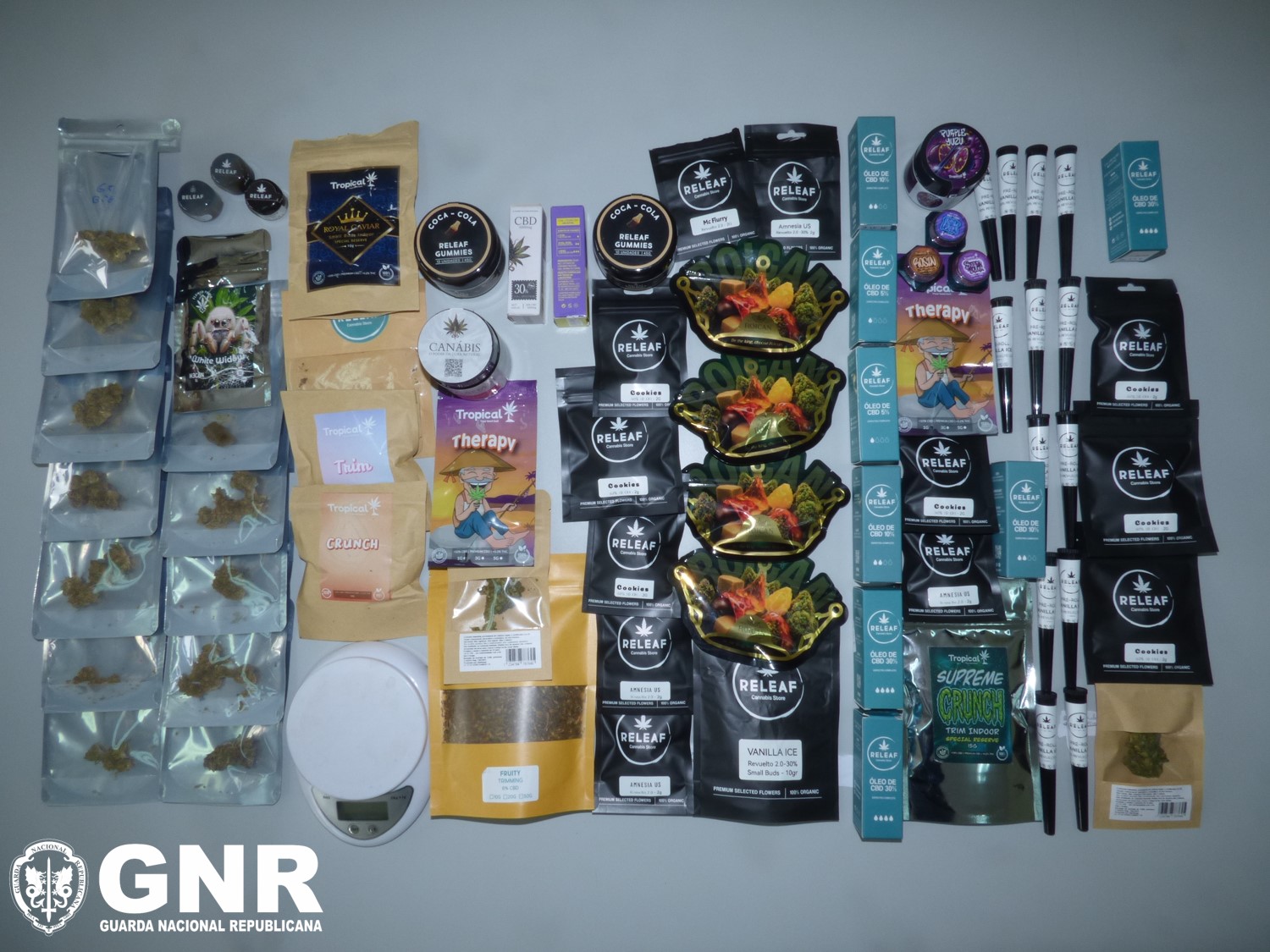 No âmbito de investigações relacionadas com a prática do crime de tráfico de estupefacientes, que durava há cerca de 18 meses, os militares da Guarda cumpriram um mandado de busca domiciliária e duas não domiciliárias que culminou na apreensão de 24 doses de cannabis resina, 59 doses de cannabis sumidade, 10 frascos de óleo de haxixe, 52 gomas de canábis, 13 charros e uma balança digital.