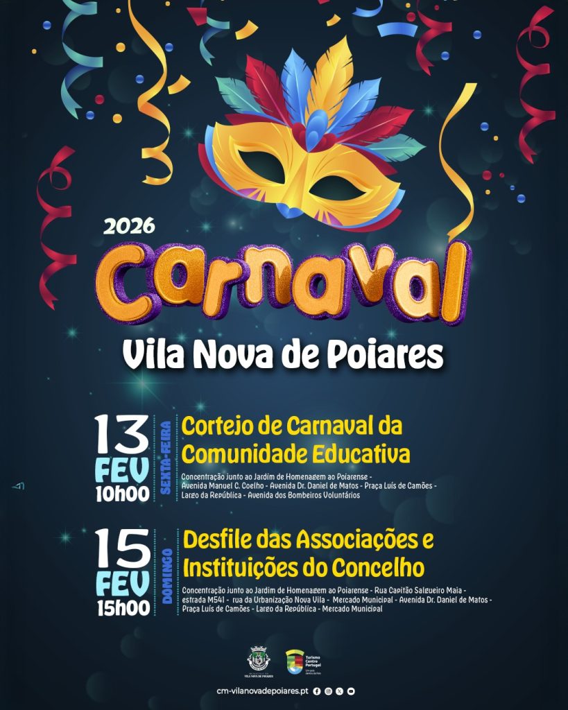 O Carnaval 2026 vai voltar a encher as ruas de Vila Nova de Poiares de cor, alegria e criatividade, com um programa que envolve a comunidade educativa e o movimento associativo do concelho.
