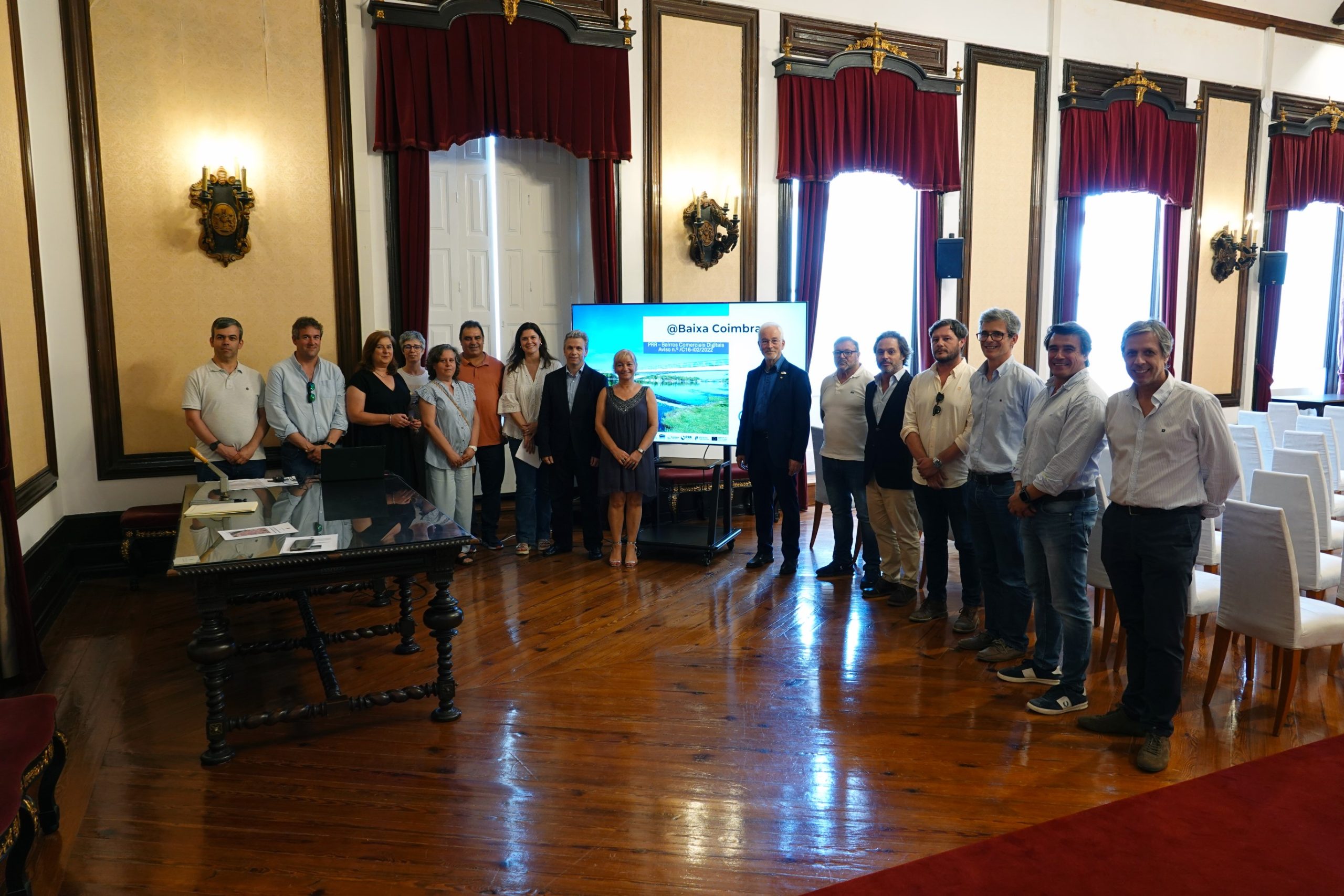 O projeto @Baixa Coimbra – “Bairros Comerciais Digitais” foi consignado no passado dia 17 de junho, no Salão Nobre dos Paços do Concelho, ao agrupamento de empresas Helenos, SA e Tomi World, Lda, por um valor de 415.207,30 euros e com um prazo de execução de 120 dias. O agrupamento de empresas fica, assim, responsável por implementar na Baixa da cidade um conjunto de soluções tecnológicas e digitais definidas na candidatura aprovada à linha de financiamento “Bairros Comerciais Digitais”, do Plano de Recuperação e Resiliência (PRR), promovida, conjuntamente, pela Câmara Municipal (CM) de Coimbra, Agência para a Promoção da Baixa de Coimbra e CoimbraMaisFuturo. A consignação contou com a presença do presidente da Câmara, José Manuel Silva, da vereadora da Reabilitação Urbana, Ana Bastos, do vereador do Comércio e também do Empreendedorismo, Investimento e Emprego, Miguel Fonseca, e dos serviços municipais envolvidos.