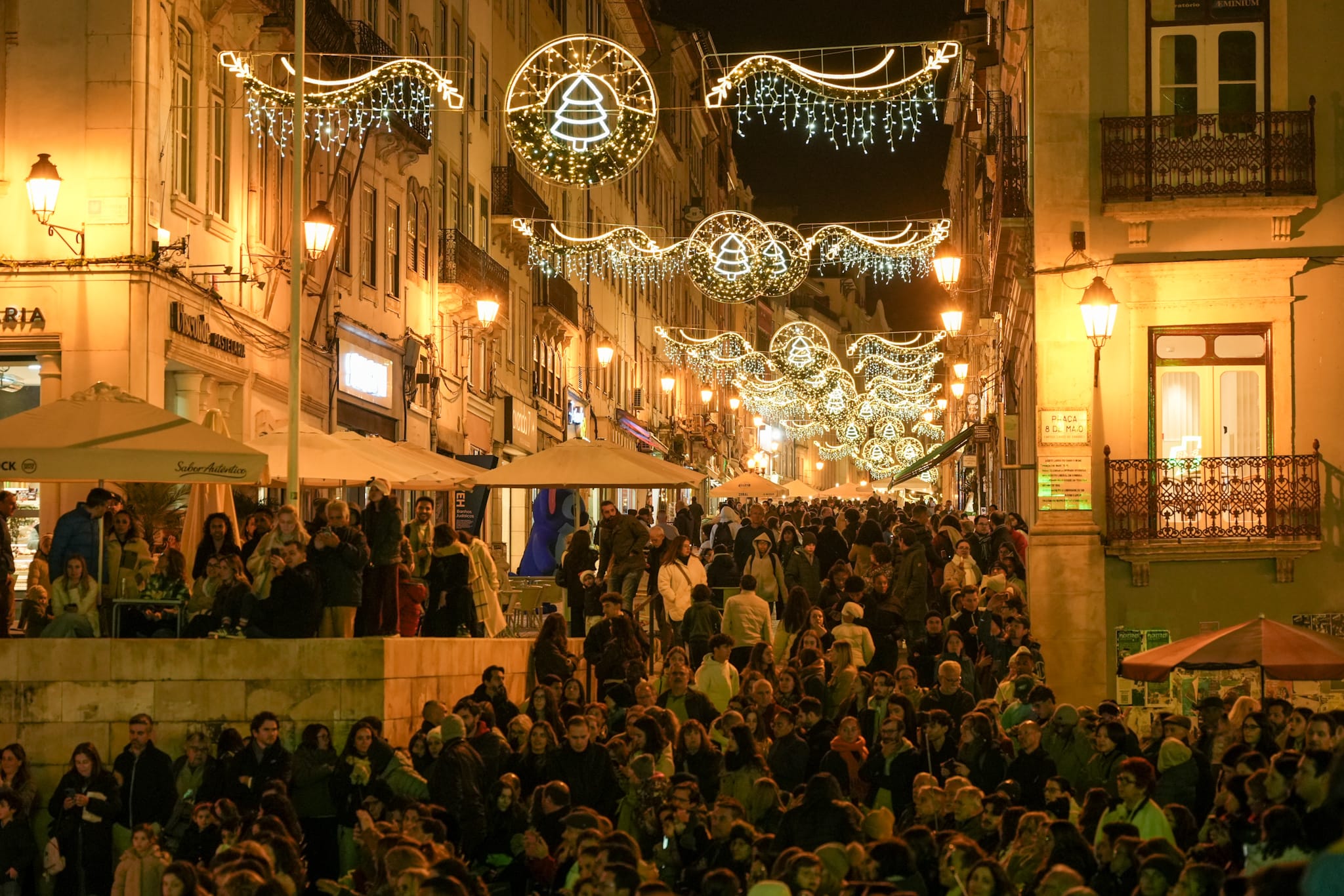 Coimbra inaugurou esta sexta-feira, ao final da tarde, a iluminação de Natal, num momento simbólico que juntou autarcas e centenas de pessoas que encheram a Baixa da cidade. A iluminação de Natal marca oficialmente o início da época natalícia, que se prolonga até 6 de janeiro e que pretende atrair visitantes, dinamizar o comércio local e reforçar a vivência festiva no concelho. “A iluminação de Natal é muito mais do que as luzes que embelezam a nossa cidade. É um momento de encontro, de partilha e de celebração, que transforma Coimbra num espaço mágico, proporcionando a todos nós, e a quem nos visita, momentos de alegria e de memória afetiva e coletiva”, afirmou a presidente da Câmara Municipal de Coimbra, Ana Abrunhosa.
