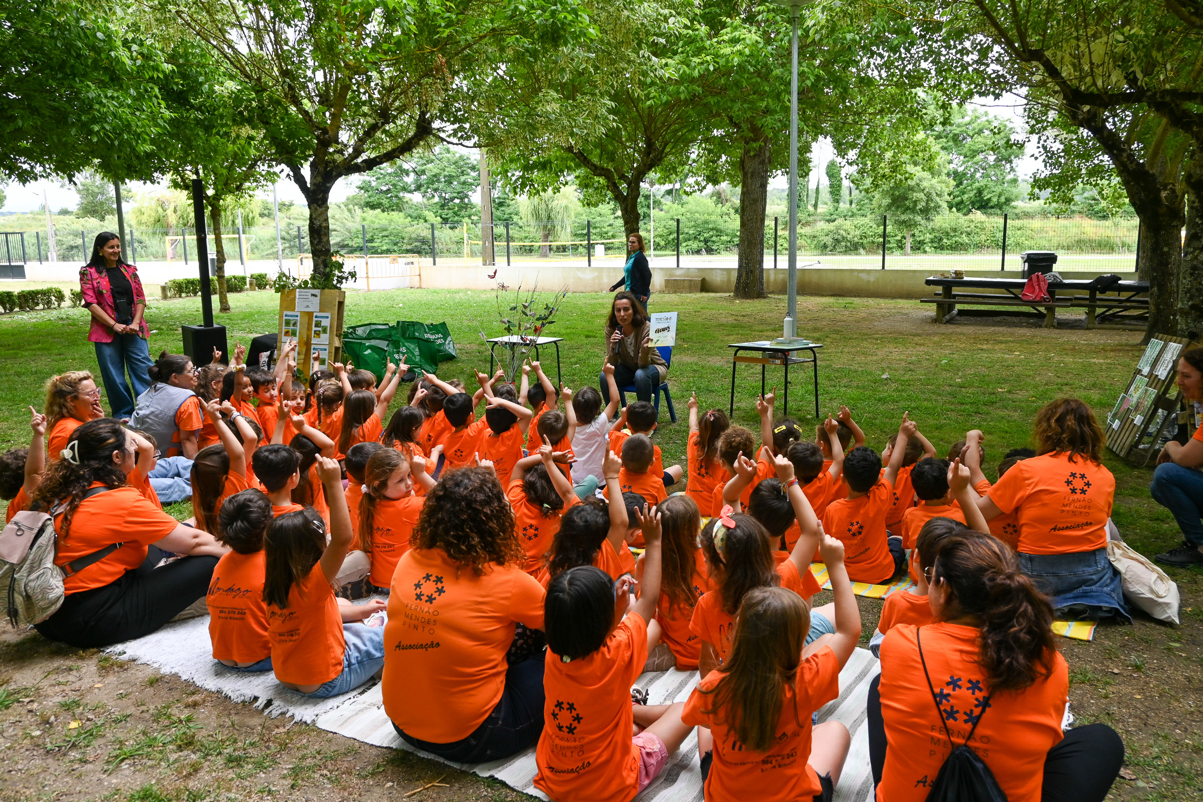 A sessão teve início com a leitura do livro “Teresinha, a mosca das flores”, pela bióloga e autora Andreia Penado. A atividade incluiu ainda a exploração do Parque de Merendas e do Parque Ribeirinho, onde foram localizados exemplares de moscas-das-flores e outros insetos polinizadores, bem como foram construídos berçários para moscas-das-flores.
