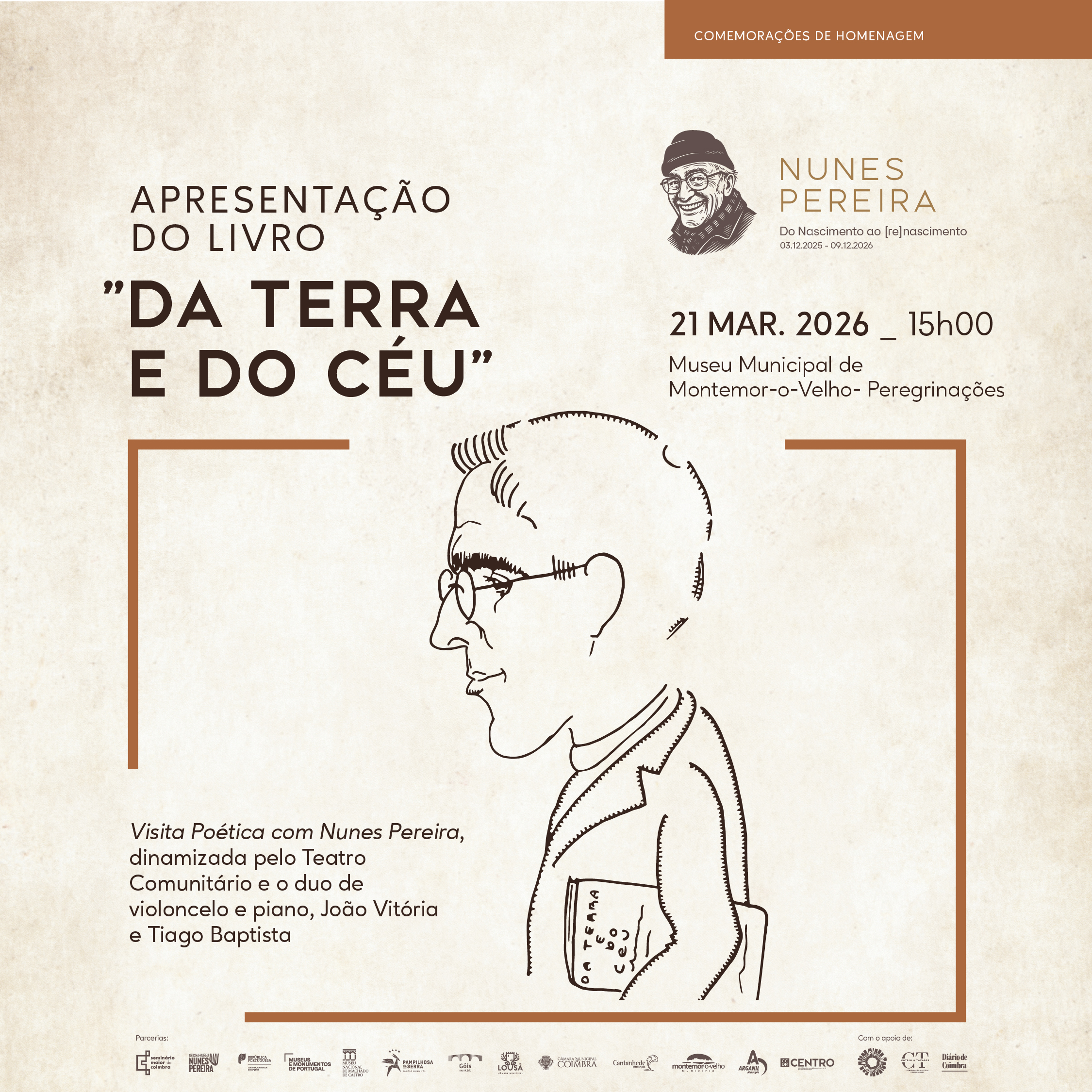 O Município de Montemor-o-Velho assinala o Dia Mundial da Poesia, no próximo dia 21 de março, com um programa dedicado à memória e à obra de Monsenhor Nunes Pereira, que inclui a apresentação da reedição do livro Da Terra e do Céu e a realização de uma Visita Poética.
